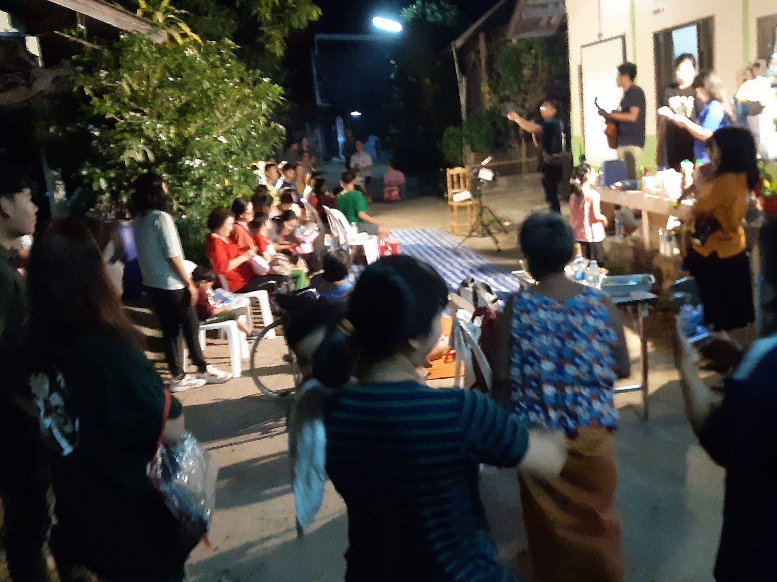 12-13 people who went to a suburb of Ubon called Tha Bor and had a outdoor